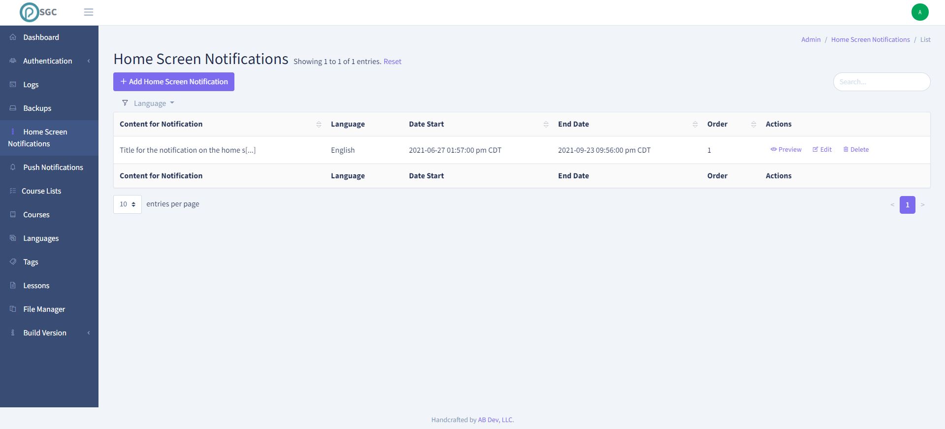 Home Screen Notifications (formerly known as Banner Images) are messages that are displayed on the home page for the mobile app. They can be configured at /admin/bannerimage.